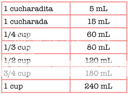 Hasta que encontré ésta web. La verdad es que es muy útil; tiene las equivalencias de cups a gramos o mililitros (dependiendo de si hablamos de sólidos o líquidos) y otras conversiones que pueden resultar útiles a la hora de cocinar.